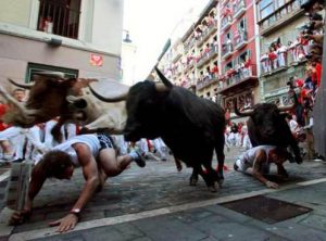 A few minutes of labored intensity passed as I trudged through a human minefield of fallen bodies, stumbling runners, and drunken daredevils who were waiting like stoic statues for the bulls to challenge their valor. I stumbled to the ground a few times never staying long enough to be consumed by the onslaught, but enough to charge my adrenalin to new levels. My hands shook and my heart pounded. The anxiety started to consume me just as the screams behind me changed. They became short and more intense and even silenced suddenly in some cases. The scene directly behind me was thick with intensity. There was no mistaking what was happening. They were there.