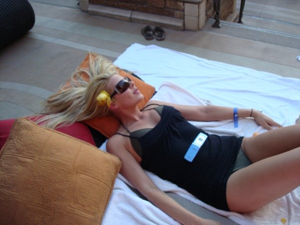 My eyes aren’t great, especially with no contacts in, but I’ve worn them since I was in the 4th grade so I’m an accomplished squinter. I surveyed the room through the millimeter left between my eyelids as I squinted down to 20/20 vision. Sunny was curled up in a ball like a Labrador in the bed next to me with what appeared to be all the covers from both beds. Tina and her sister were in the other bed huddling together for warmth and the room itself looked like a pizza delivery vehicle had just crashed through an Express clothing store. Either I’ve slept through a week’s worth of partying or the mess in our room after one night out is excessive. Either way, O2 was at the Hard Rock and I planned on gathering a pool crew.